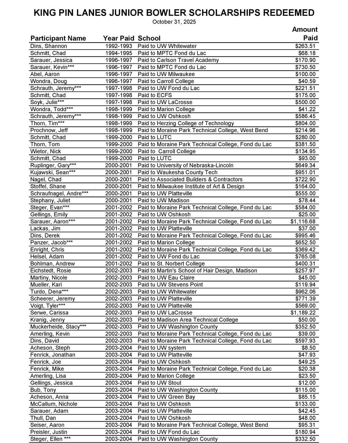 • OPEN BOWLING - FALL/WINTER/SPRING